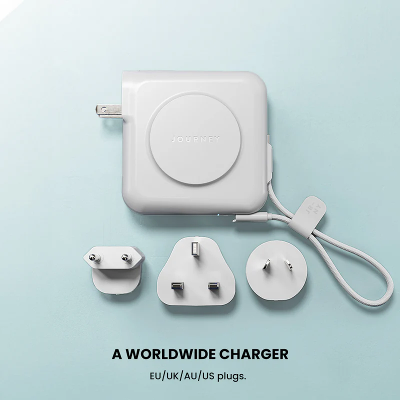 Power Bank Mode: 2 x USB-C & wireless charging max output: 35W - Universal Plugs: US built-in plug + EU, AU, UK convertible plugs included